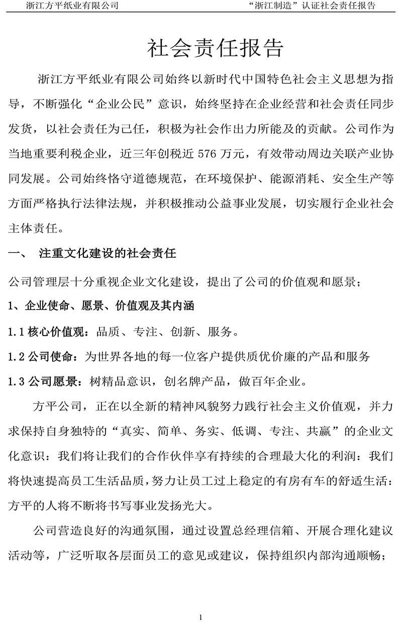 上一篇:浙江方平纸业有限公司质量诚信报告